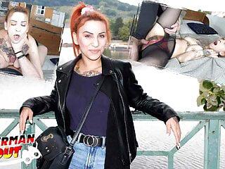 Die sexy Brünette strippt und spielt an ihrem langen Schwanz rum